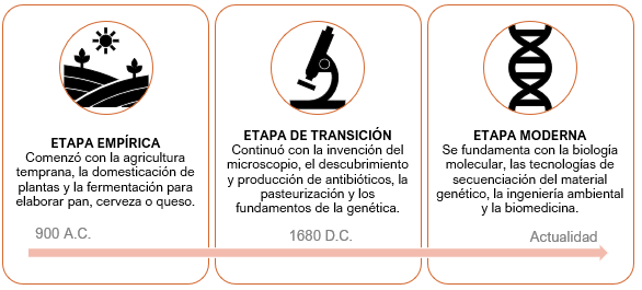 Cada una de estas etapas ha contribuido las bases de la biotecnología moderna que abarca campos muy distintos, mostrando una gran versatilidad.